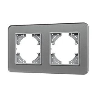 Рамка стеклянная на 2 поста, под встраиваемый механизм. Цвет - серый с Soft-Touch покрытием. Уровень герметичности IP20. Ориентация монтажа - горизонтальная (основным ориентиром служат посадочные выступы для накладки механизма).