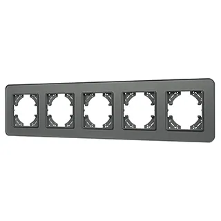 Рамка стеклянная на 5 постов, под встраиваемый механизм. Цвет - серый. Уровень герметичности IP20. Ориентация монтажа - горизонтальная (основным ориентиром служат посадочные выступы для накладки механизма).