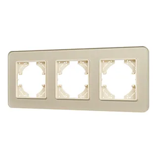 Рамка стеклянная на 3 поста, под встраиваемый механизм. Цвет - золотой. Уровень герметичности IP20. Ориентация монтажа - горизонтальная (основным ориентиром служат посадочные выступы для накладки механизма).