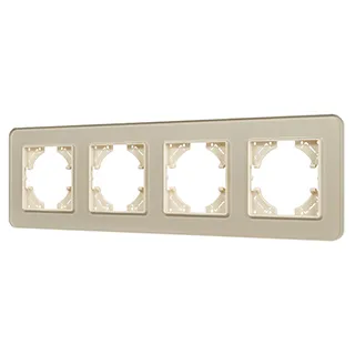 Рамка стеклянная на 4 поста, под встраиваемый механизм. Цвет - золотой с Soft-Touch покрытием. Уровень герметичности IP20. Ориентация монтажа - горизонтальная (основным ориентиром служат посадочные выступы для накладки механизма).