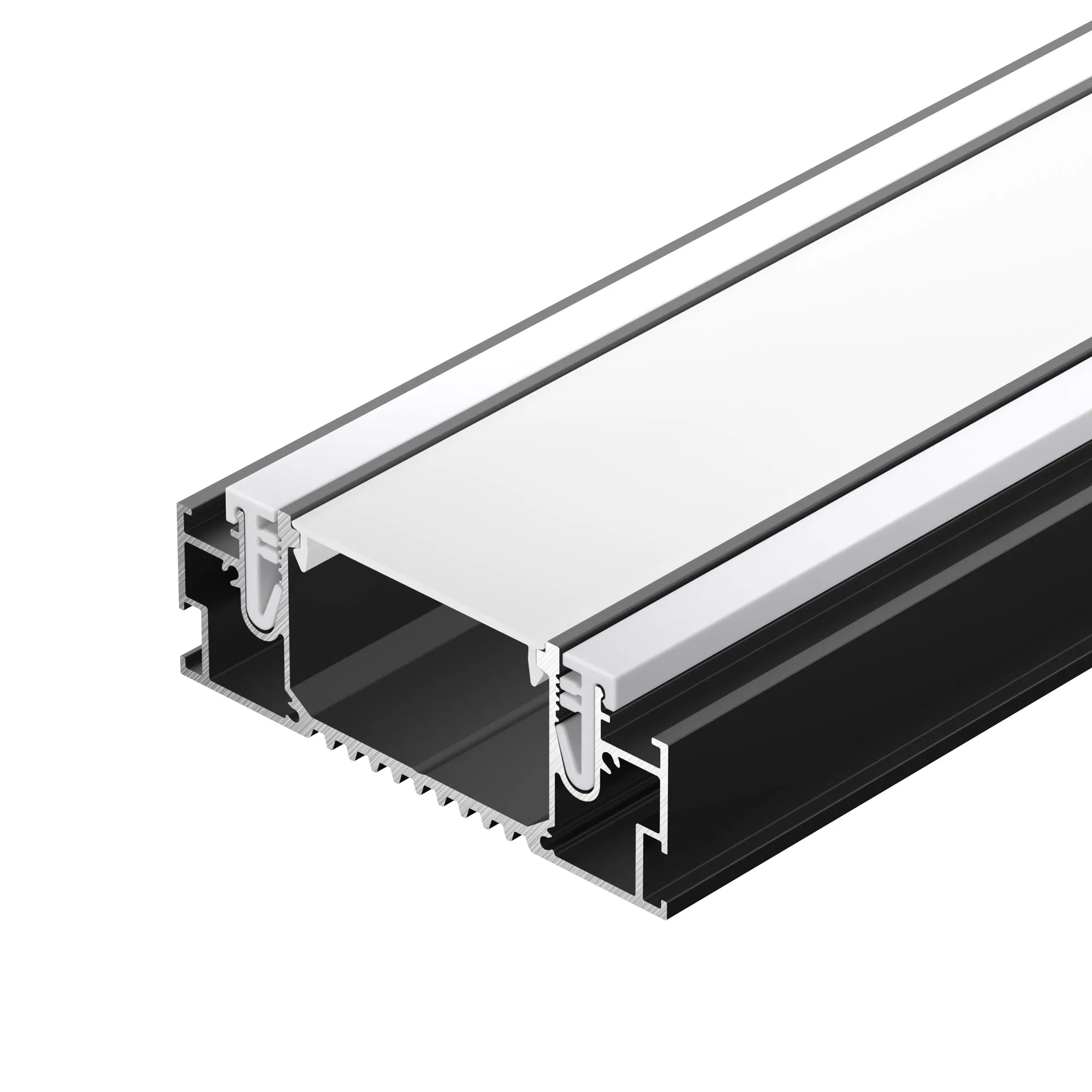 Алюминиевый профиль черного цвета для натяжных потолков (центральная линия). Решение 2-в-1 - каркас для крепления натяжного потолка и профиль для установки светодиодной ленты. Для дизайнерских решений «линии света» в натяжных потолках. Подходит для тканевых и ПВХ потолков. Монтируется к потолку накладным способом. Ширина площадки для ленты 38,3 мм. Длина 2000 мм. Цена за 1 м.