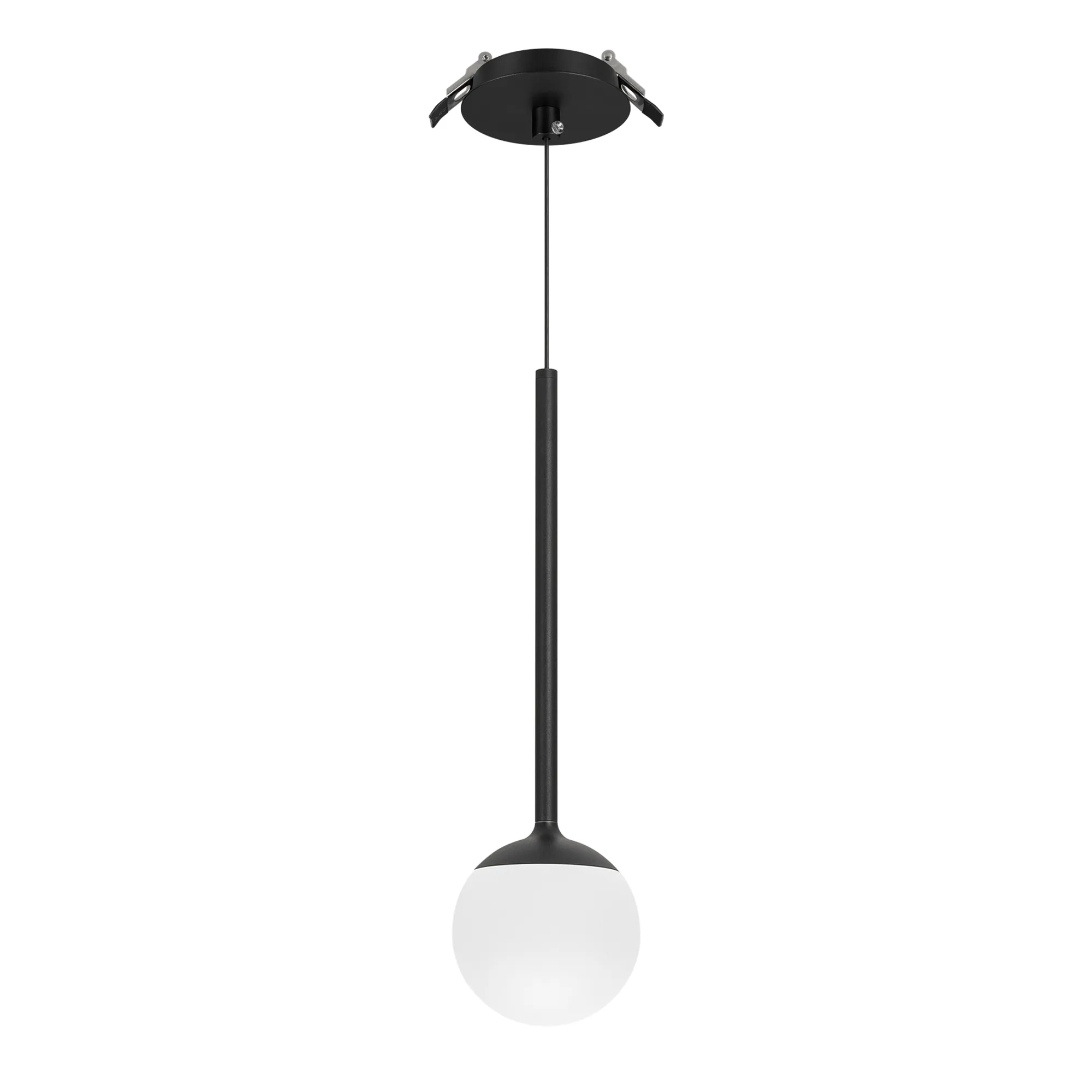 Встраиваемый подвесной светильник. Мощность 8 Вт, св. поток 620 лм, 80 лм/Вт, теплый 3000 K, CRI>90, угол 180°, напряжение питания 230 В. Черный круглый корпус из алюминия и стали, рассеиватель акрил, степень защиты IP20. Размер: диаметр 100 мм, высота ножки 244 мм, длина подвеса 1150 мм. Размеры чаши Ø 92x50 мм, размер врезного отверстия Ø 82 мм. Диаметр провода Ø 4 мм. Монтаж встраиваемый. Драйвер 13-24 В, 300 мА, пульсация <1%.
