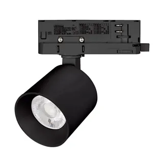 Светильник для трехфазных треков, 8 Вт. Цвет свечения ТЁПЛЫЙ 3000K, световой поток 856 лм, угол 38°, CRI>90. Корпус круглый, металл, цвет черный, IP20. Размеры Ø60x59,7 мм. Входное напряжение AC220-240V, мощность 8 Вт. Драйвер встроенный (9-40V, 200 mA).Пульсация <1%.