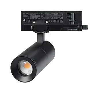 Светильник для треков/шин 4 провода с управлением DALI, Мощность 12Вт. Цвет свечения ТЁПЛЫЙ 3000K, световой поток 721 лм, 65 лм/Вт, регулируемый угол 8-80°, CRI>90. Корпус круглый, алюминий, цвет чёрный, IP20. Размеры L × W × H (Ø) 192 х 144 х Ø55 мм. Входное напряжение AC220-240V. Монтаж на трек 3-фазный. Драйвер 10-42В (300-800 мА), 50/60Гц, максимальная мощность 42W