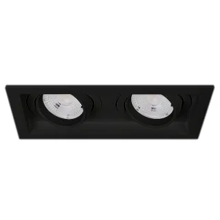 Поставка под заказ от 60 шт. Встраиваемый карданный светильник. Мощность 2х12 Вт, св. поток 2636 лм, 109 лм/Вт, дневной 4000 K, CRI>92, угол 20°, напряжение питания 230 В. Чёрный корпус из алюминия, белая вставка, степень защиты IP20. Размер: длина 170 мм, ширина 90 мм, высота 80 мм. Монтаж встраиваемый, установочное отверстие: длина 155 мм, ширина 75 мм. Драйвер 27-40 В, 300 мА, пульсация <2%.