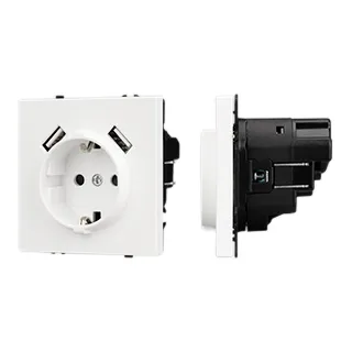 Механизм розетки с заземлением на 1 пост и 2USB Type A порта. Цвет - белый кварц, с Soft-Touch покрытием. Без фронтальной рамки. Уровень пылевлагозащиты IP20. Розетка устанавливается в стандартный подрозетник круглого сечения диаметром 60мм.