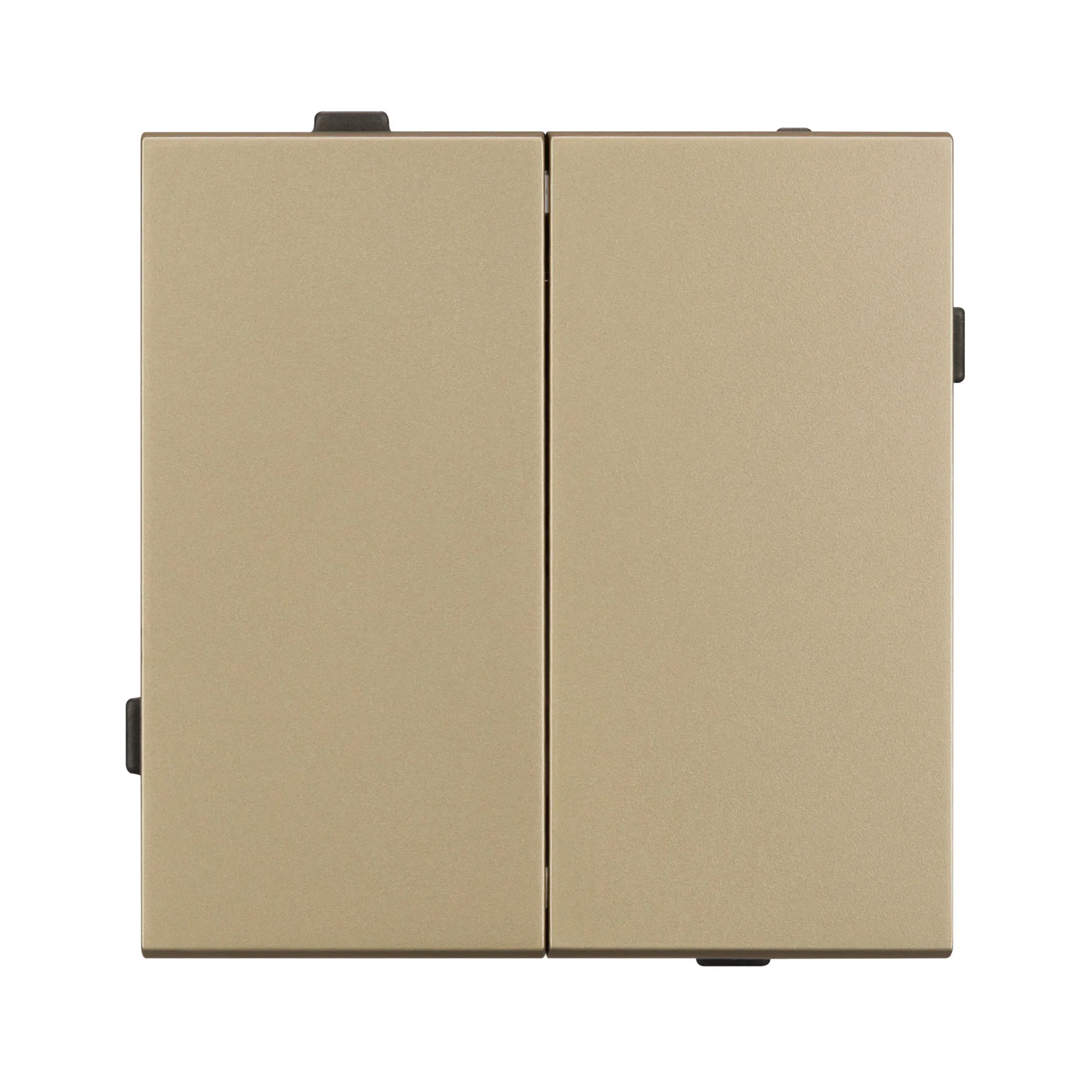 Механизм выключателя света клавишный на 1 пост 2 клавиши (проходной). Цвет - золотой, с Soft-Touch покрытием. Без фронтальной рамки. Уровень пылевлагозащиты IP20. Выключатель устанавливается в стандартный подрозетник круглого сечения диаметром 60мм.