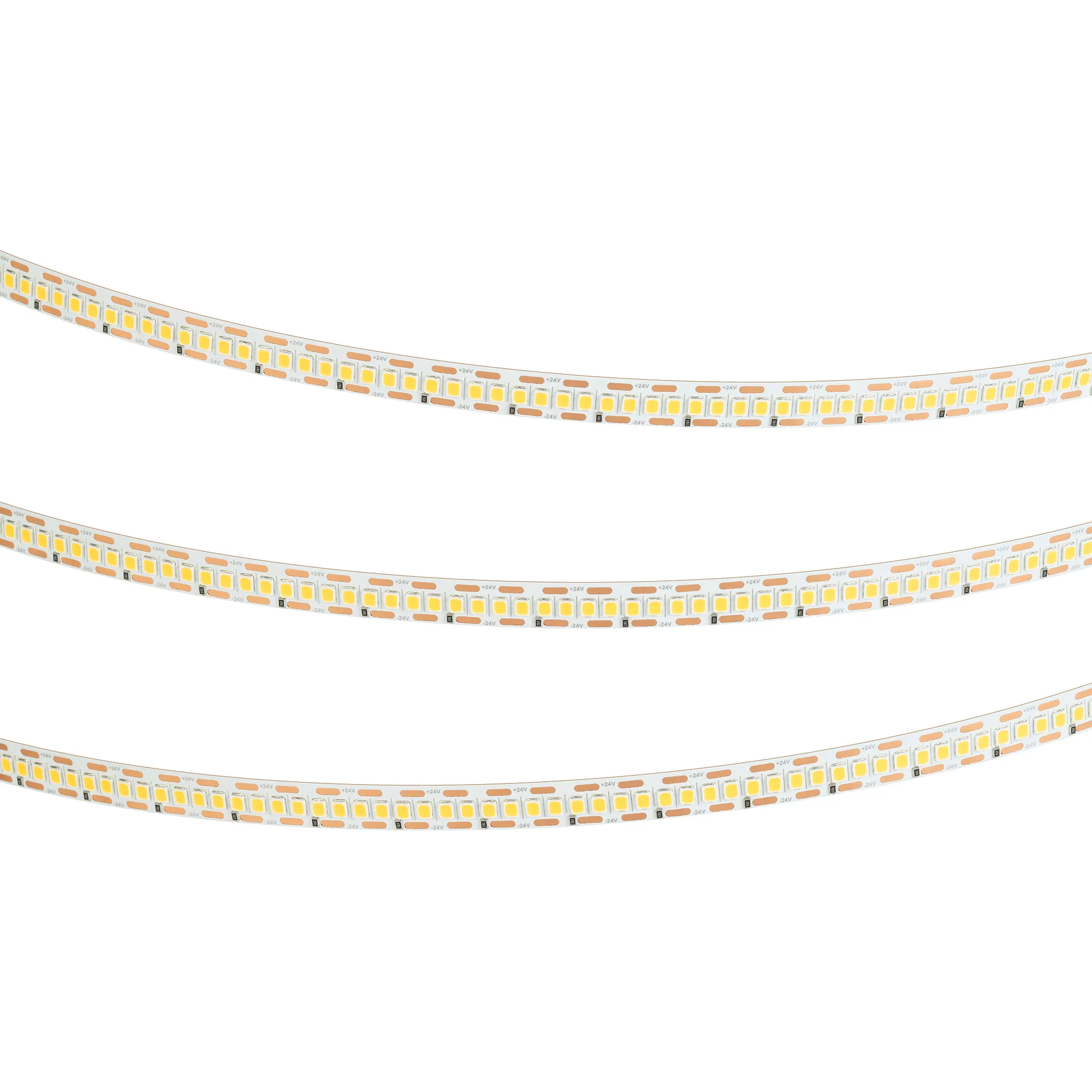 Светодиодная лента FC серии A240 с малым шагом резки. Светодиоды SMD 2835, 240 шт/м, белая плата, ширина 10 мм, скотч 3M. Цвет ТЕПЛЫЙ 2400K, индекс цветопередачи CRI>90, угол 120°. Питание 24 В, мощность 24 Вт/м (120 Вт на 5 м). Размеры 5000x10x1.3 мм. Мин. отрезок 4.16 мм, 1 светодиод. Цена за 1 м. Обязательна установка на профиль.
