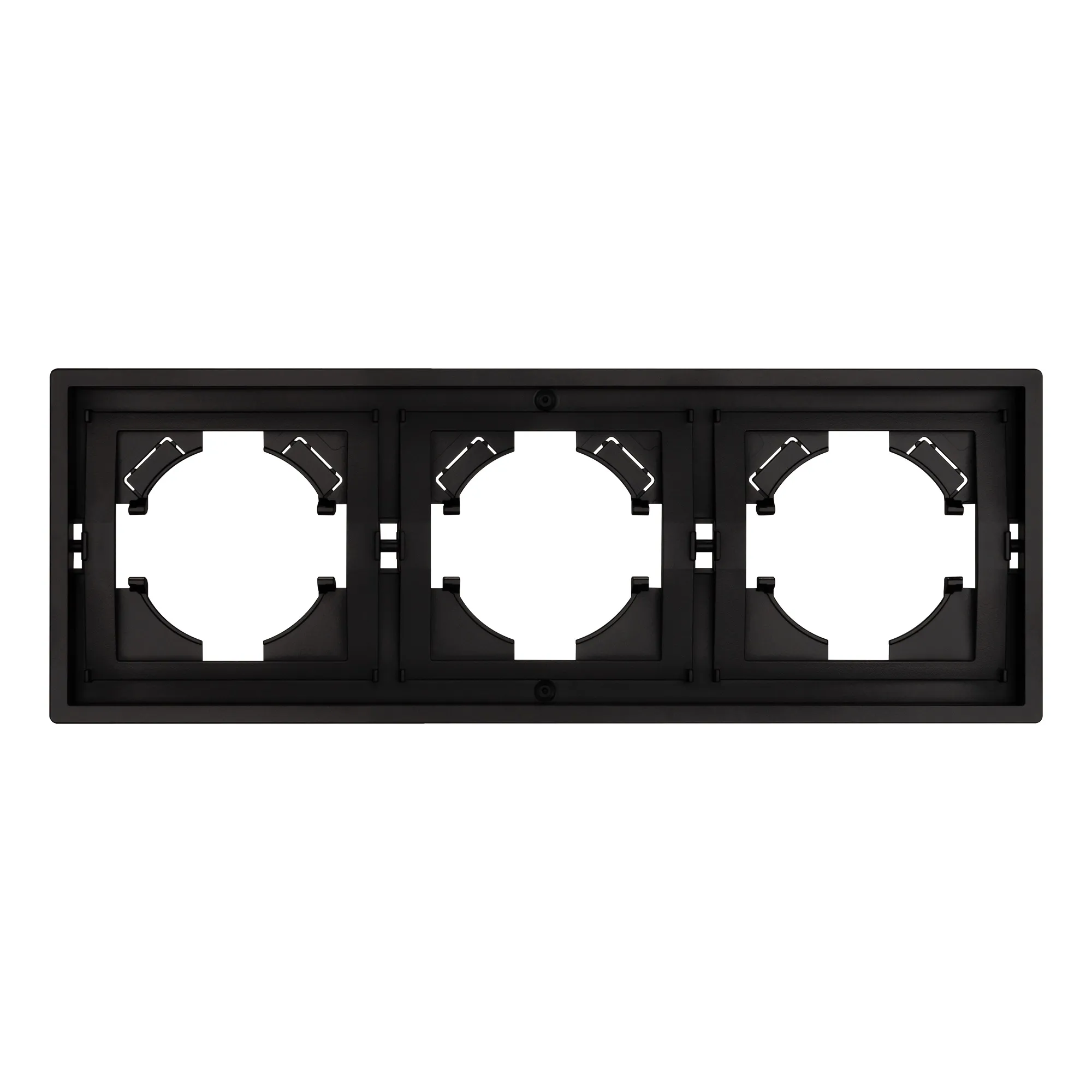 Рамка пластиковая на 3 поста, под встраиваемый механизм. Цвет - черный. Уровень герметичности IP20. Ориентация монтажа горизонтальная. Габаритные размеры: длина 221 мм, ширина 80 мм, высота 9 мм. Гарантийный срок 12 мес.