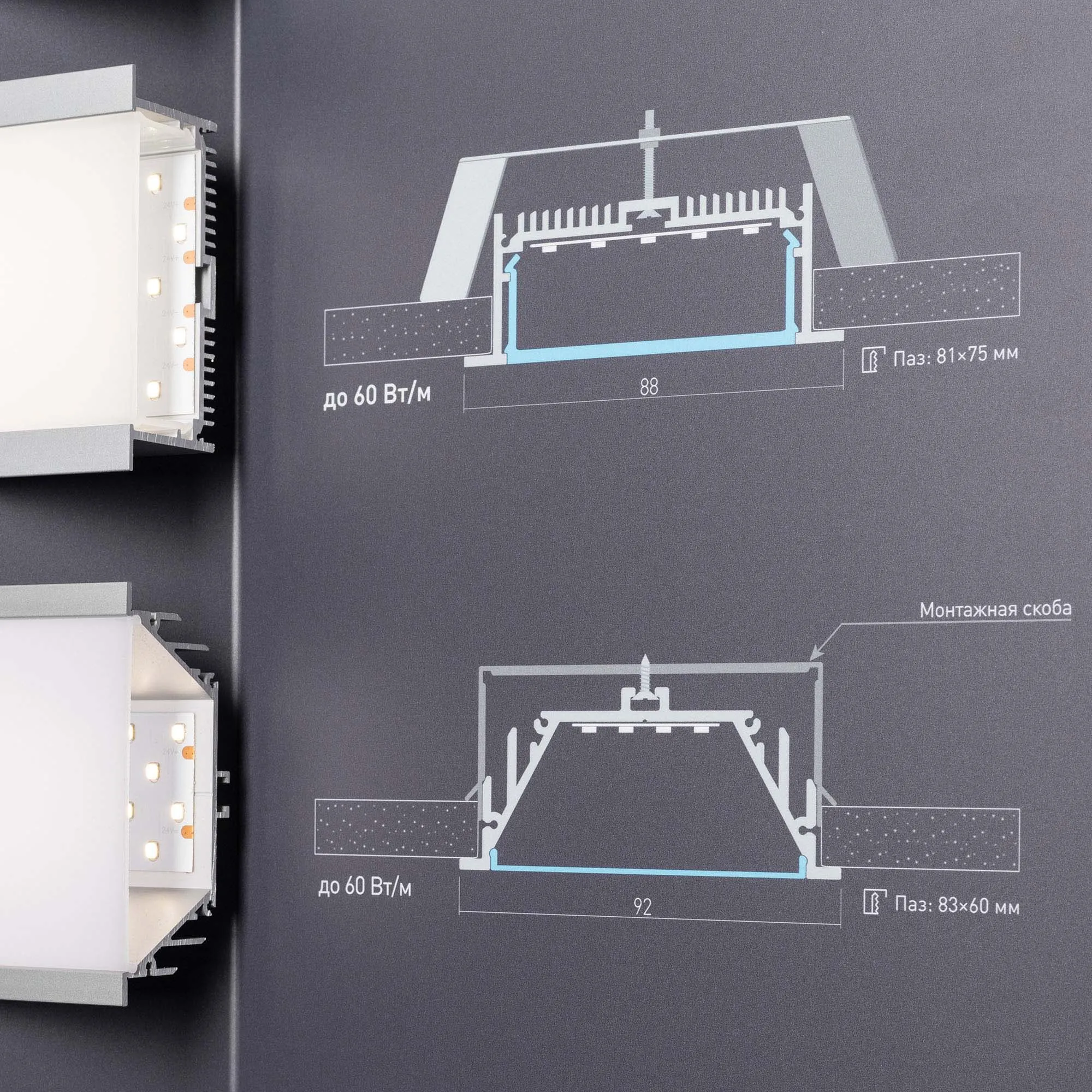 Стенд Алюминиевые Профили Встраиваемые со светодиодной лентой.