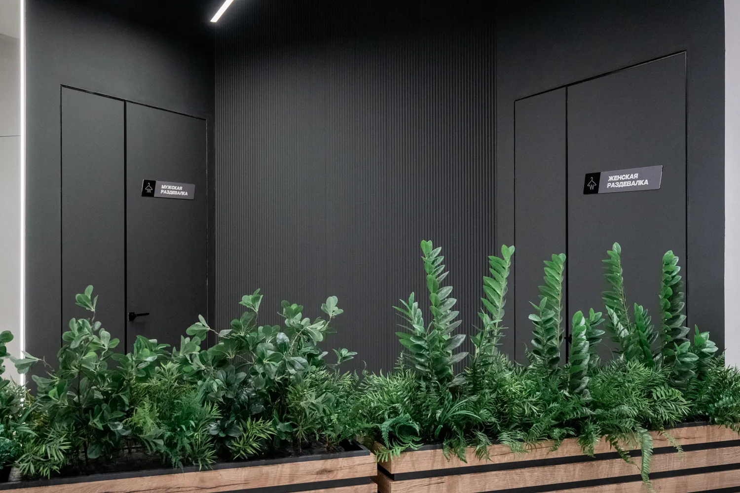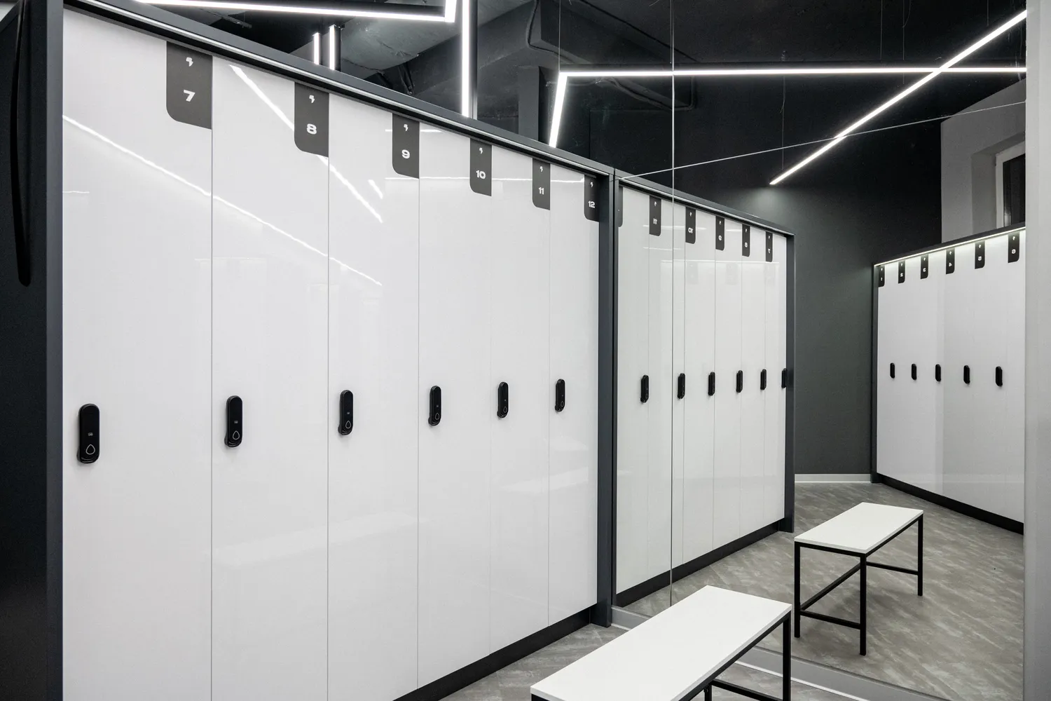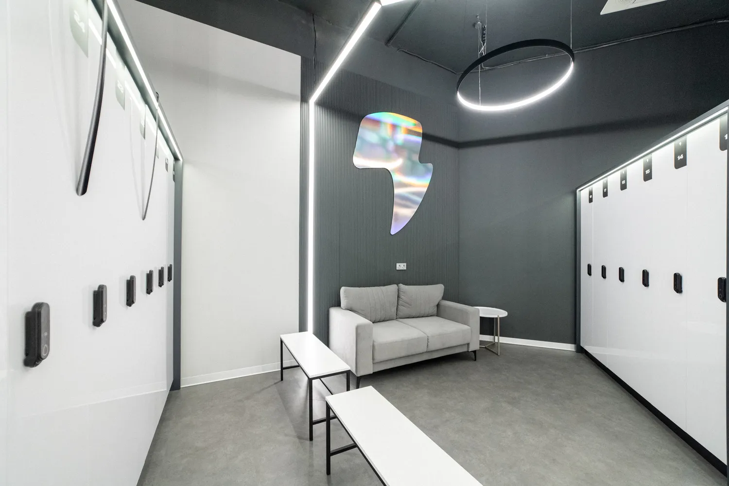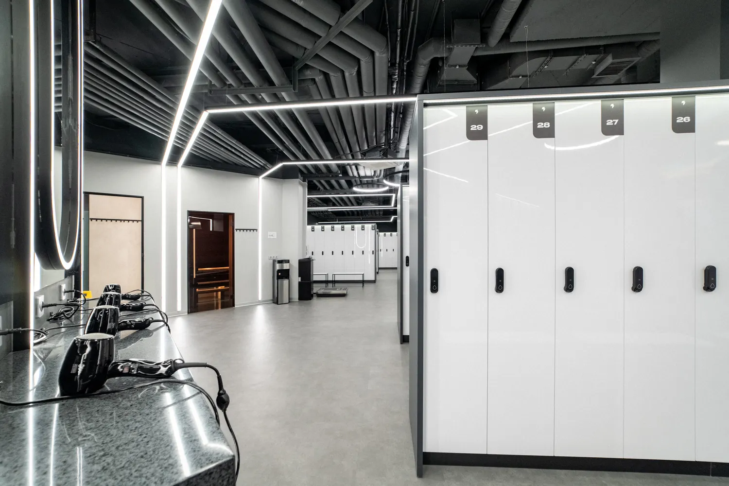 - Управление освещением: предусмотрели возможность управления освещением в таких помещениях как: SPA-зоны, зал групповых программ, раздевалки. Для этого использовали светорегуляторы и панели управления, чтобы адаптировать уровень освещённости под разные ситуации и время суток. В частности в зале групповых программ фитнес-центра диммируемые светильники общий метраж, которых составляет 90 метров, позволяют синхронно регулировать яркость, создают уникальную атмосферу и обеспечивают комфортное освещение для различных видов тренировок.