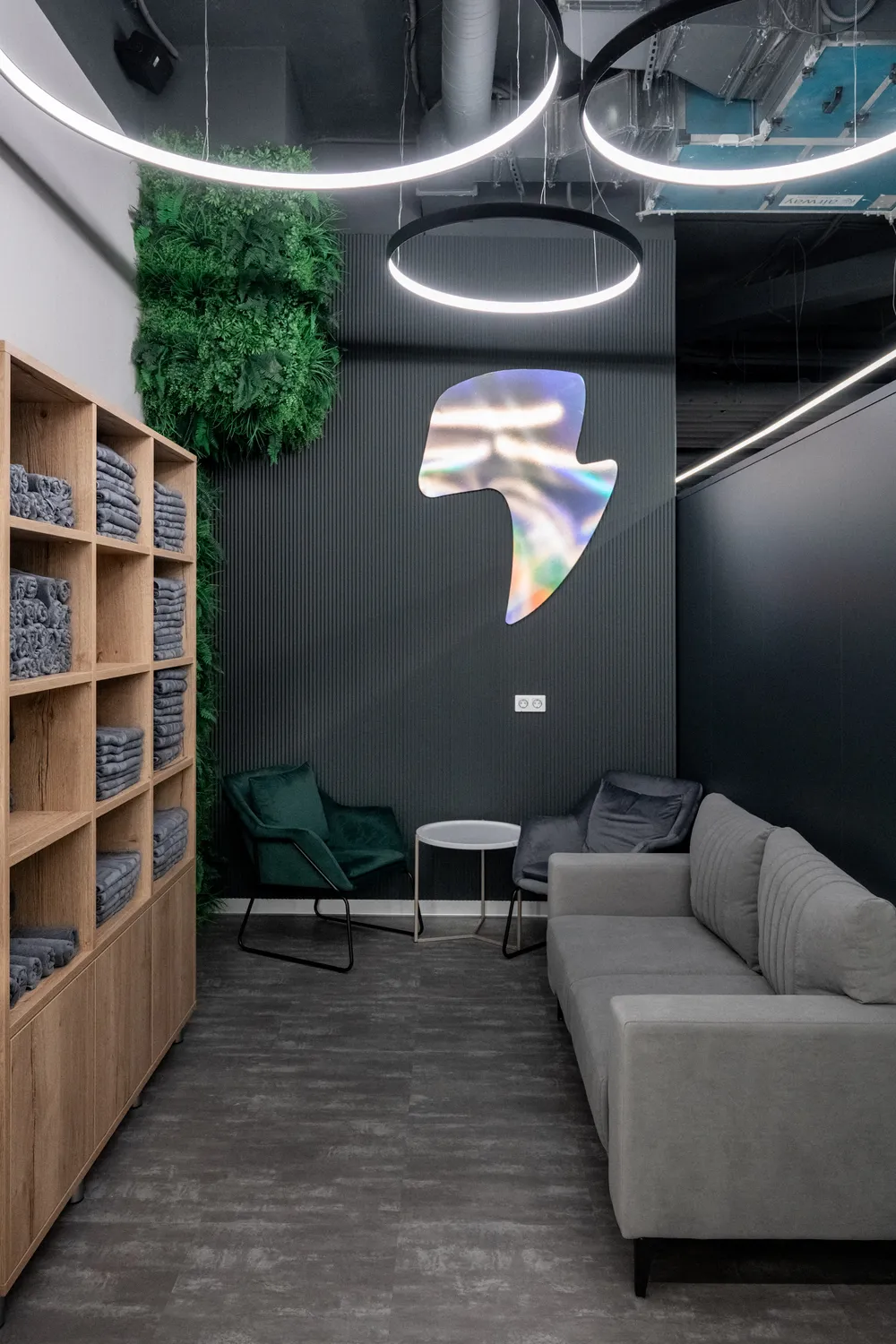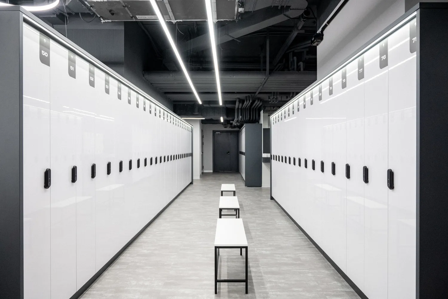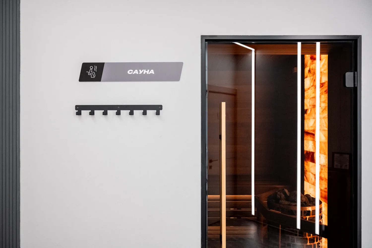 - Управление освещением: предусмотрели возможность управления освещением в таких помещениях как: SPA-зоны, зал групповых программ, раздевалки. Для этого использовали светорегуляторы и панели управления, чтобы адаптировать уровень освещённости под разные ситуации и время суток. В частности в зале групповых программ фитнес-центра диммируемые светильники общий метраж, которых составляет 90 метров, позволяют синхронно регулировать яркость, создают уникальную атмосферу и обеспечивают комфортное освещение для различных видов тренировок.