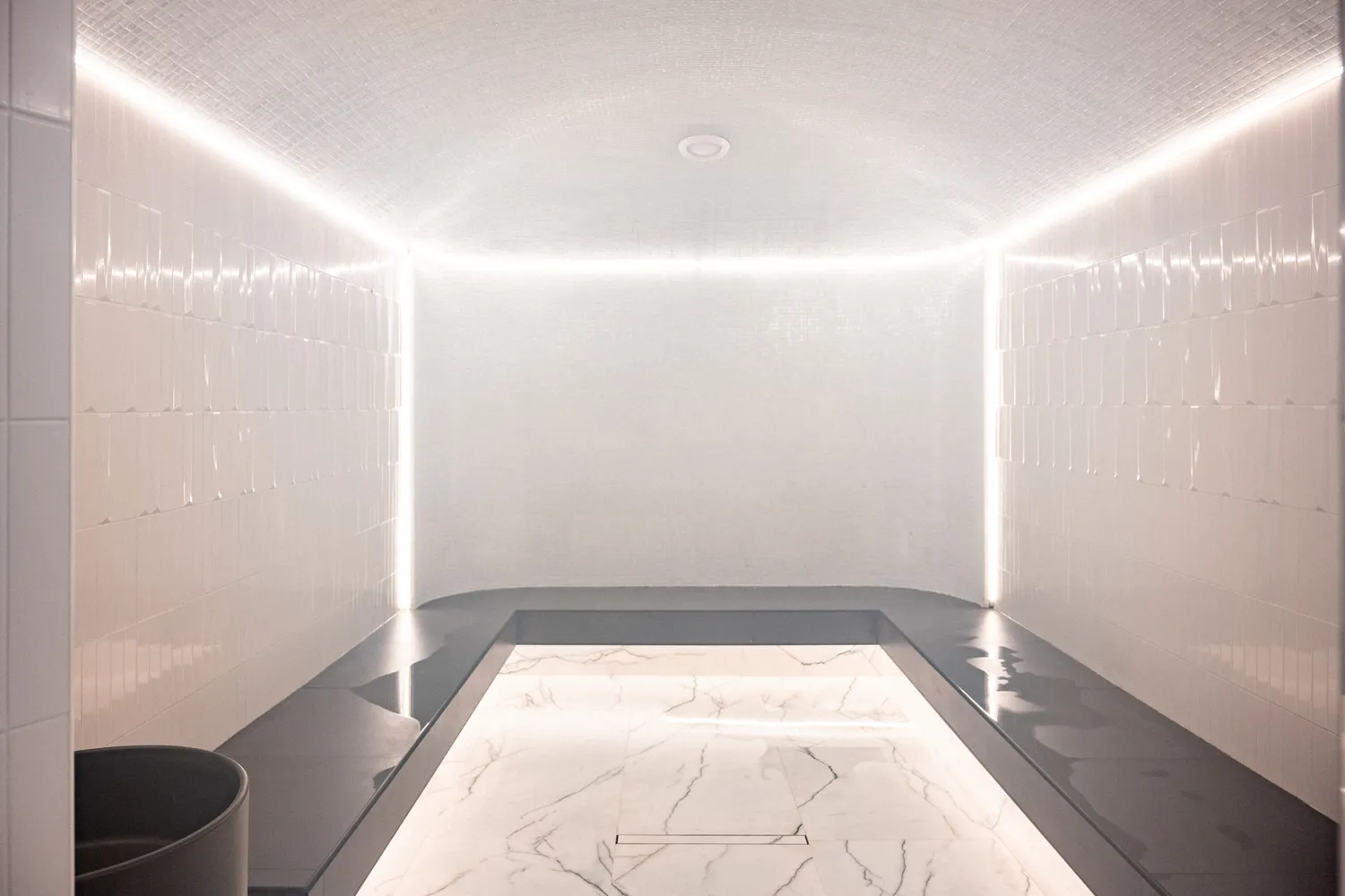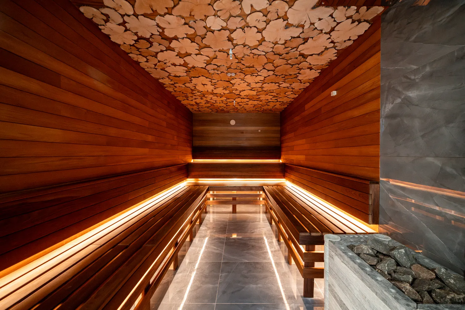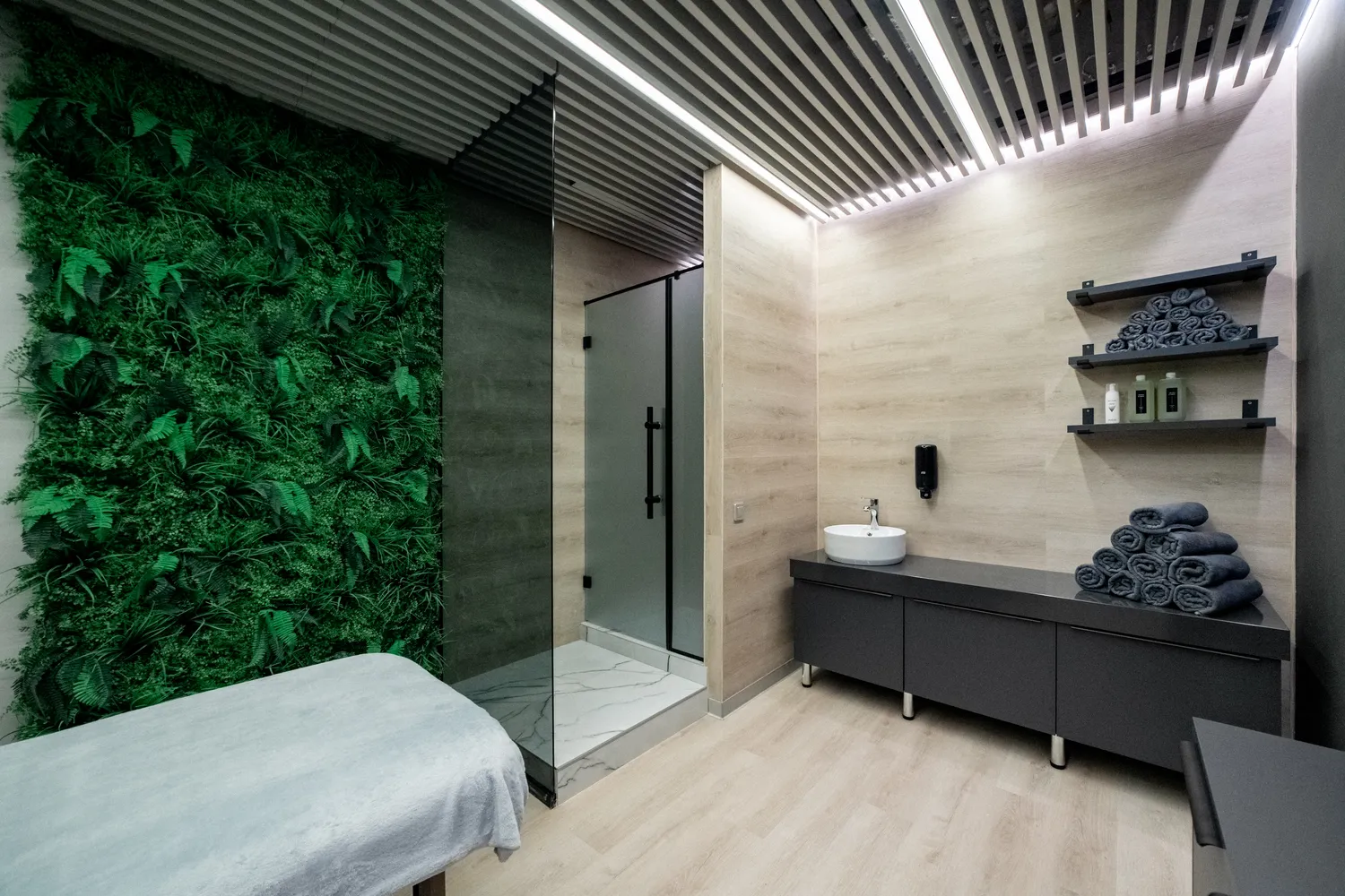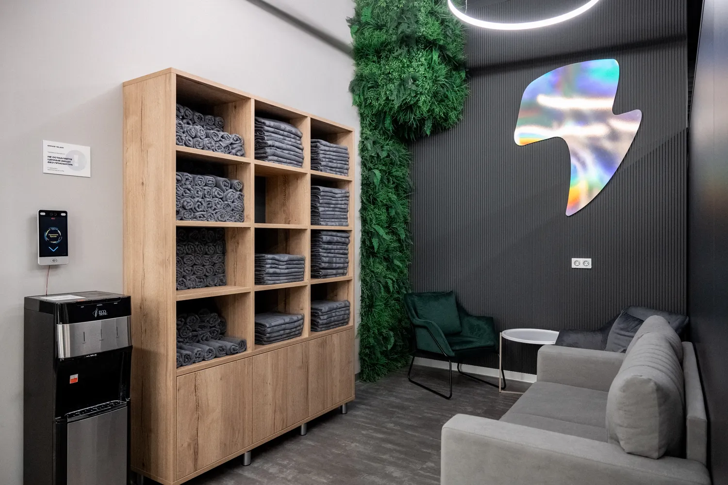 - Управление освещением: предусмотрели возможность управления освещением в таких помещениях как: SPA-зоны, зал групповых программ, раздевалки. Для этого использовали светорегуляторы и панели управления, чтобы адаптировать уровень освещённости под разные ситуации и время суток. В частности в зале групповых программ фитнес-центра диммируемые светильники общий метраж, которых составляет 90 метров, позволяют синхронно регулировать яркость, создают уникальную атмосферу и обеспечивают комфортное освещение для различных видов тренировок.